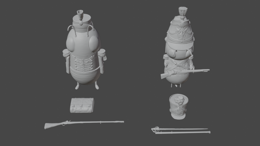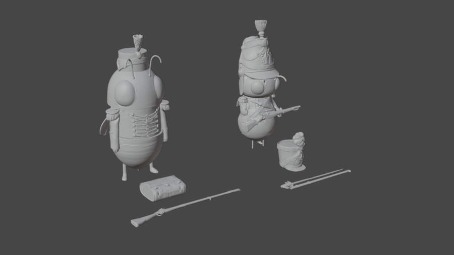 Коллекция 3D моделей героев из игры «Шмелиная баллада». Каждая модель имеет уникальные исторические элементы униформы 1812 года, что отличает её от всех остальных моделей, также шмели принадлежат не только к различным родам войск, но и к различным нациям.