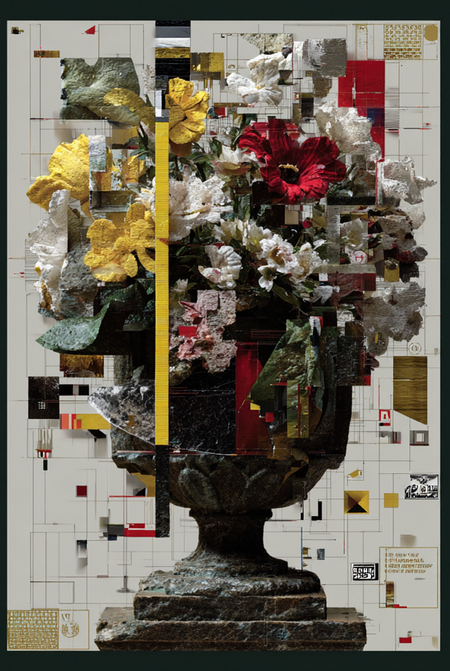 5. Geometric poster advertising avant-garde clay flower pots, abstract human figures holding patterned pots in constructivist style, limited palette black red yellow blue, bold outlined text ‘Discover the New World in Every Bloom’ at bottom, symbolic unity theme, flat graphic design, promotional flyer format» --s 750 --p 87w88yn 6. Avant-garde constructivist poster for ‘Symbol of the New World’ pottery shop, central stacked geometric clay pots forming upward growth symbol, red yellow accents on black white layout, text ‘Discover New World Pots — Transform Your Home’ in bold geometric typography, high contrast lines, promotional event poster style, vertical format» --s 750 --p 87w88yn