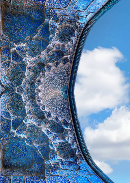 В исламе вода является абсолютной ценностью. Голубые и бирюзовые оттенки вызывают ассоциации с живительной влагой рек, озер и оазисов. Они напоминают о водных садах Рая, где текут реки и фонтаны, приносящие прохладу и покой. Использование синего цвета создает ощущение свежести, чистоты и возрождения.