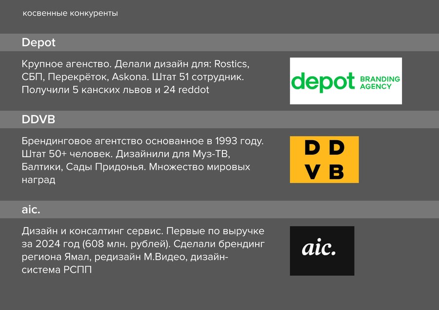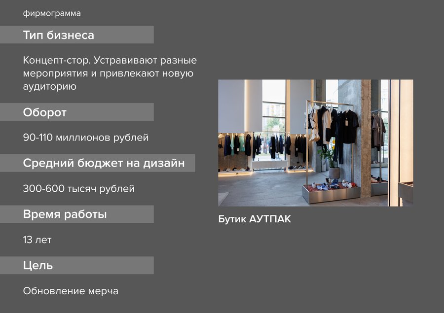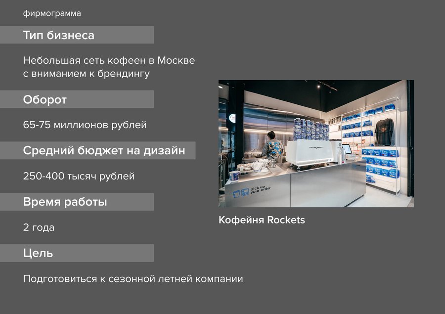 Например, создание айдентики, а также организация последующих съёмок и продакшена в рамках кейса.