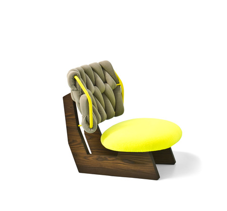 Мебель из коллекции «Бикнит» имеет яркую деталь: спинка и иногда сиденье выполнены по принципу чулочной вязки «нитью» увеличенного масштаба. Такой эффект расширения создает впечатление повышенной мягкости изделия и вызывает сильное желание тактильного контакта с ним.