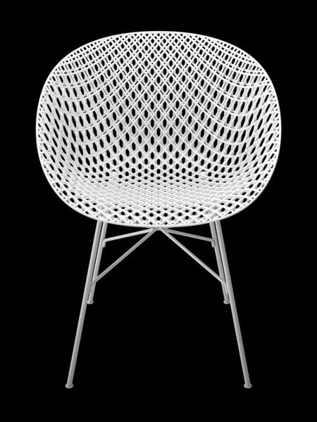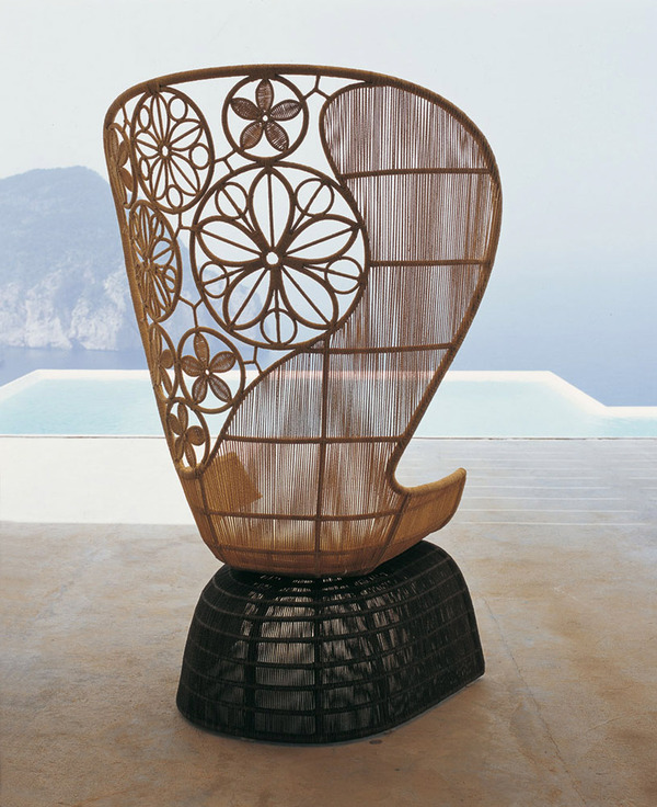Кресло с корпусом, выполненным из сложного трёхмерного плетения синтетического волокна.