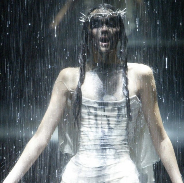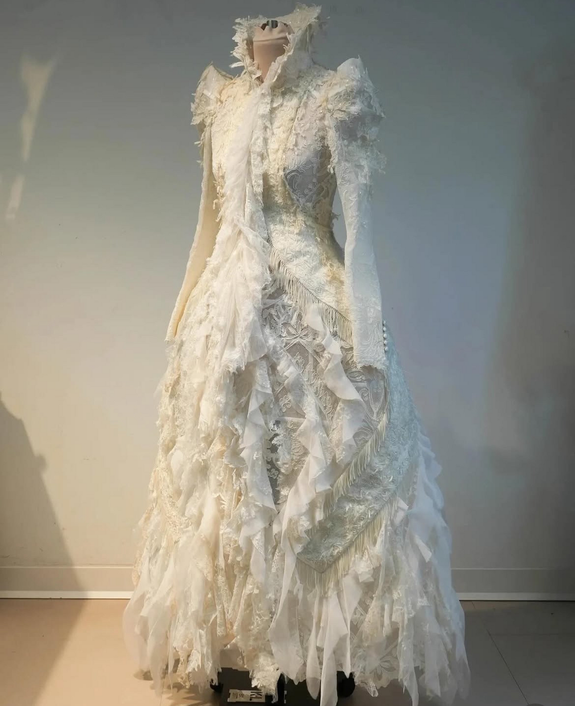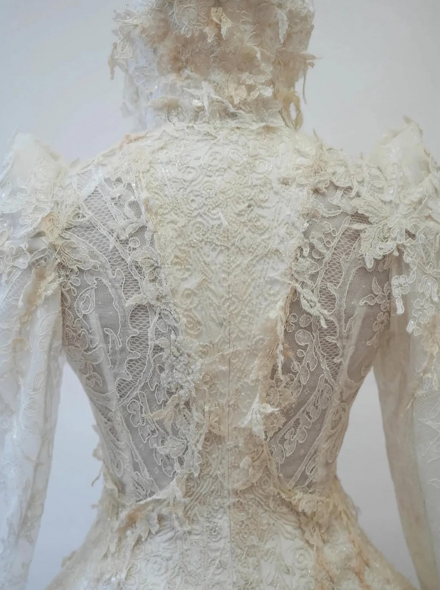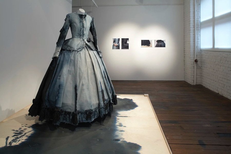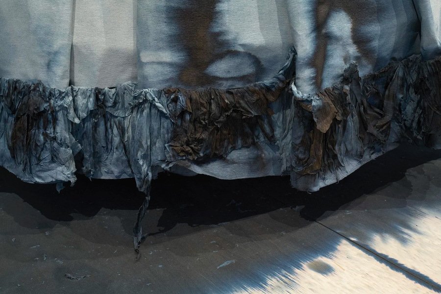 «The Weeping Dress» Марты МакДоналд это перформанс, где ткань буквально впитывает слёзы, превращая эмоциональную боль в материальный объект. Художница создаёт платье как сосуд для скорби, возвращая одежде её древнюю функцию перенимать чувства человека. В этом проекте ткань становится границей между внутренним миром и внешним, сохраняя следы того, что невозможно проговорить словами. Вода, стекая по ткани, делает траур видимым, при этом не разрушая одежду, а наоборот, оживляя её. МакДоналд создаёт параллель с ритуалами оплакивания, в которых одежда становилась материальным свидетельством утраты. Платье превращается в автономный организм: оно «плачет» вместе с телом, становясь его продолжением. Работа показывает, что текстиль может быть эмоционально активным не просто поверхностью, но участником переживания. Художница словно возвращает одежде духовное измерение, утраченной в эпоху массового производства. «The Weeping Dress» демонстрирует, как искусство может соединять травму, тело и ткань в единый ритуал. Платье становится не объектом, а процессом процессом проживания боли, превращения её в движение и память.