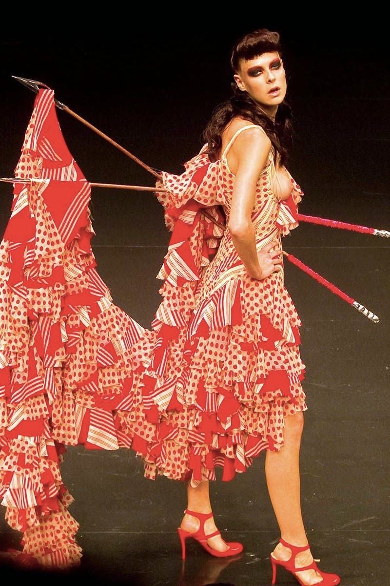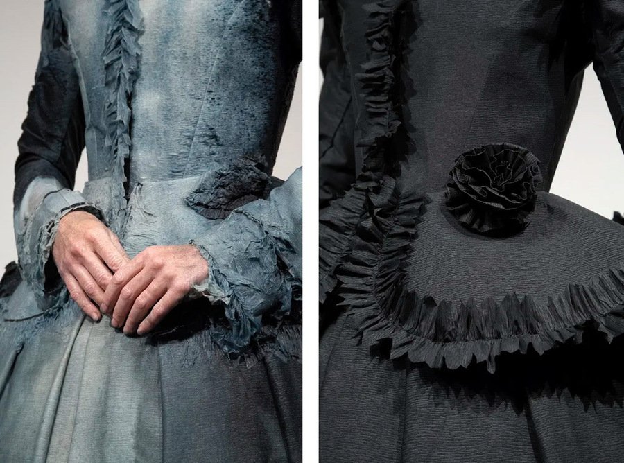 Александр Маккуин использовал ткань как тело, которое уязвимое, пугающее, прекрасное и смертное. Его коллекции часто превращали подиум в ритуал, где боль и освобождение сосуществуют в одном визуальном движении. Вещи Маккуина напоминают доспехи, защищающие женское тело от мира, который его ранит, но эти доспехи всегда имеют трещины. Его знаменитые примеры «расшитых ран», красных ниток, шипов и металлических элементов это метафоры насилия и одновременно его преодоления. Маккуин часто вдохновлялся смертью, создавая одежду как форму борьбы с собственными демонами и депрессией. В его коллекциях ткань делает видимой ту боль, которую общество обычно требует скрывать. «Highland Rape» превращает национальную историю в модный манифест о коллективной травме и женской уязвимости. Маккуин показывает, что красота и жестокость неразрывны: ткань может быть одновременно мягкой и опасной. Его подиумы это театральные экзорцизмы, где мода становится способом очистить тело от накопленной боли. Для Маккуина шитьё было формой спасения: через создание одежды он пытался восстановить разрушенные части собственной психики.