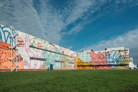 Один из знаковых муралов «Стой — Иди. Амбар в Нормандии» Эрика Булатова (2020) занял фасад бывшего цеха завода и сразу обратил на себя внимание горожан. Такие работы сделали серую индустриальную зону красивой и приятной, а заброшенные территории превращают в привлекательные городские локации
