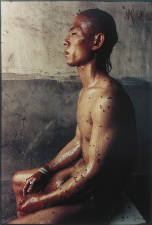 Перформанс китайского художника Чжана Хуаня, осуществлённый в летний зной в самом грязном общественном туалете арт-кластера «Восточное поселение» на окраине Пекина. Художник нагим обмазал тело мёдом и рыбим жиром и почти час неподвижно сидел на табурете, привлекая рой мух. Акция носила личный характер самовыражения и была протестом против санитарных условий в китайских городах.