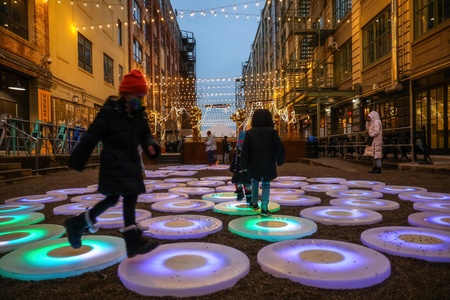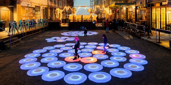 В таких работах зрители принимают активное участие. Например, инсталляция «The Pool» Джен Левин представляет собой сетку подсветных панелей, которые при нажатии создают волны света и звука.