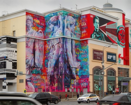 Масштабные настенные росписи меняют облик города, делая его ярче и осмысленнее. Так, в Выксе (Нижегородская область) ежегодно проходит фестиваль «Арт-Овраг», где художники расписывают фабричные и жилые стены.