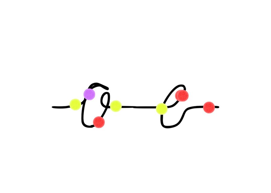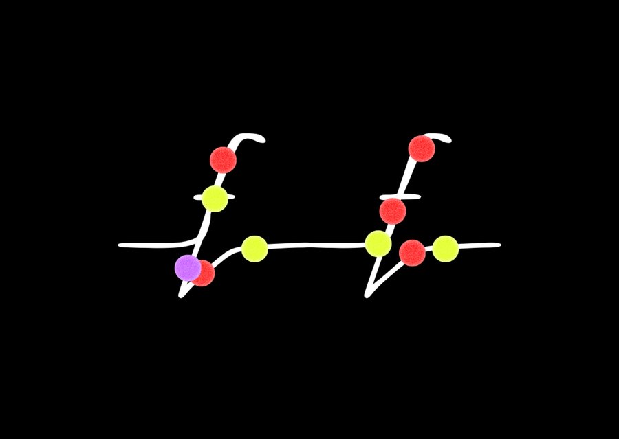 По тому же принципу построен генеративный шрифт: каждая буква — это непрерывная линия с «нанизанными» бусинами, которые становятся частью единой визуальной системы и могут варьироваться.