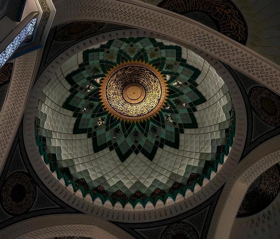 Хильми Шеналп, купол мечети Шахинбей Миллет, 2012–2024 гг. Фото: Газиантеп. Мечеть аль-Харам, с 632 года и по сей день. Фото: Мекка. Авторы, даты фото в обоих случаях неизвестны.