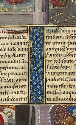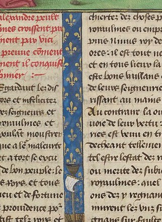 Во Франции с XII века флёр‑де‑лис, или геральдическая лилия, стаа эмблемой королевской власти: при Карле VII три лилии стали официальным гербом монархов. Этот мотив символизировал легитимацию власти через божественное право, а также христианскую Троицу (три лепестка как образ Отца, Сына и Святаго Духа), чистоту и непорочность Девы Марии (белая лилия — её традиционный атрибут, символ целомудрия), очищение и благодать.