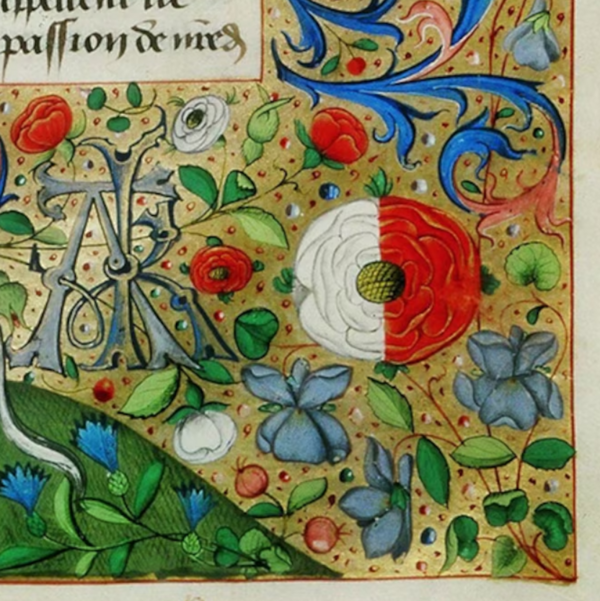 В христианской традиции роза — многозначный символ, смысл которого развивался веками и зависит от цвета, деталей и контекста. Белая роза олицетворяет чистоту и невинность Богоматери; её название «роза без шипов» подчёркивает непорочность. Красная роза символизирует кровь Христа, его страдания и жертву, напоминая о терновом венце и страданиях
