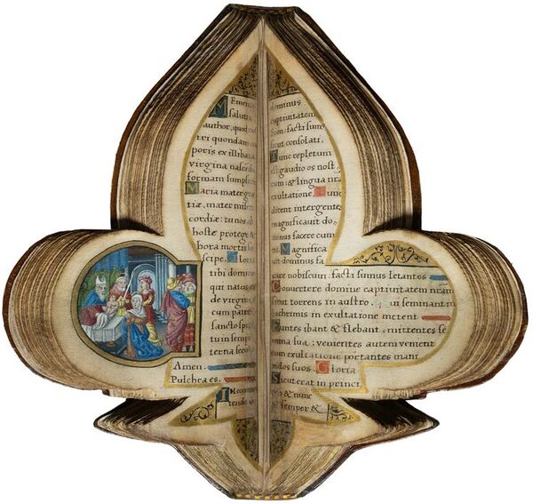1. снизу слева «Песенник Жана де Моншеню» 1475, 2. книга часов в форме королевской лилии 1553