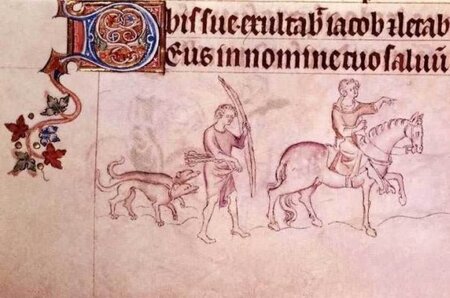 Охотник со слугой и собаками. Псалтрь королевы Мари. 1310-1320 Лондон.