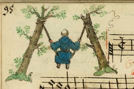 Playing on the swings. Recreation for a weary monk. CambraiChansonnier»