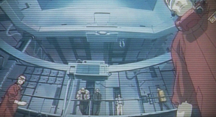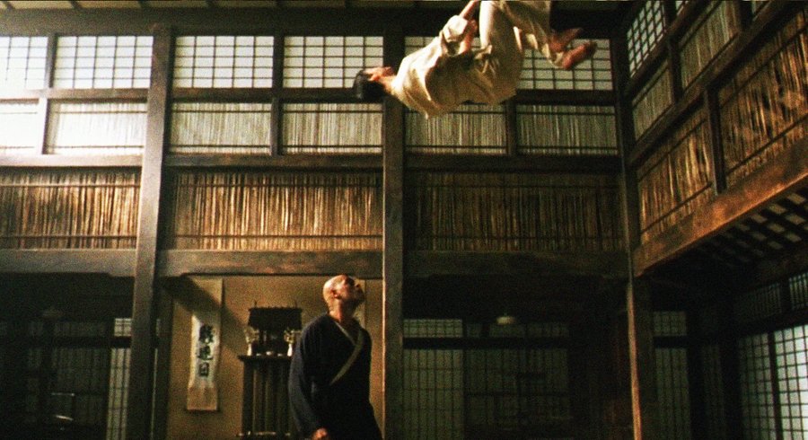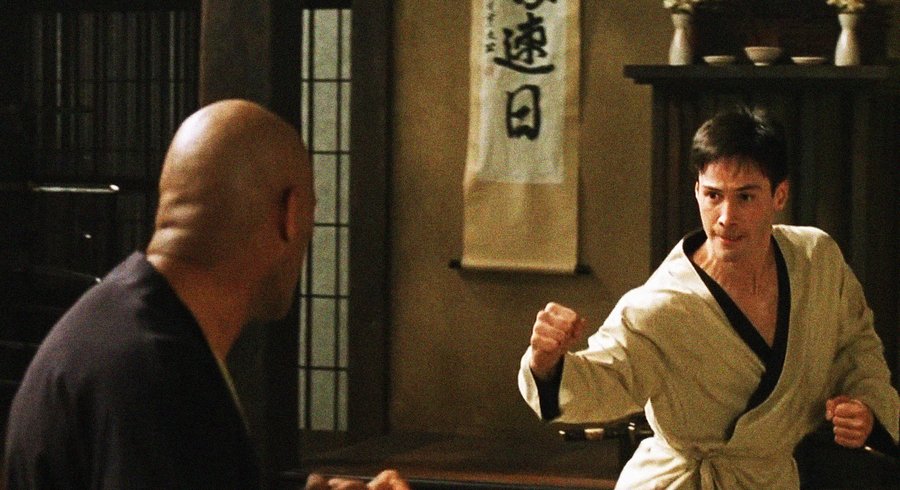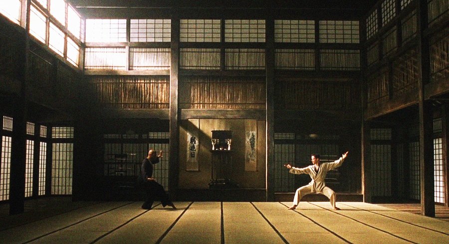 Так, в сценах в зале додзе визуальная структура напоминает интерфейс: пространство не материально, а сгенерировано, его геометрия имеет идеальные формы.