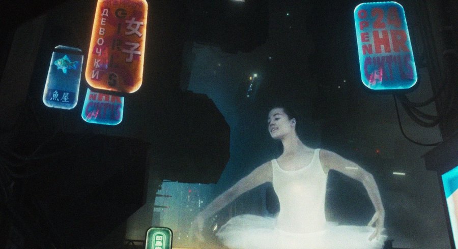 Холодная десатурированная палитра с металлическим блеском преобладает в «Призраке в доспехах» 1995 года. Отражения и полированные поверхности усиливают ощущение стерильности и технологической дистанции. Цвет и свет в данном случае выполняют структурирующую функцию: они отделяют органические элементы (например, кожу и человеческие фигуры) от искусственной среды, подчеркивая конфликт между телесным и машинным.