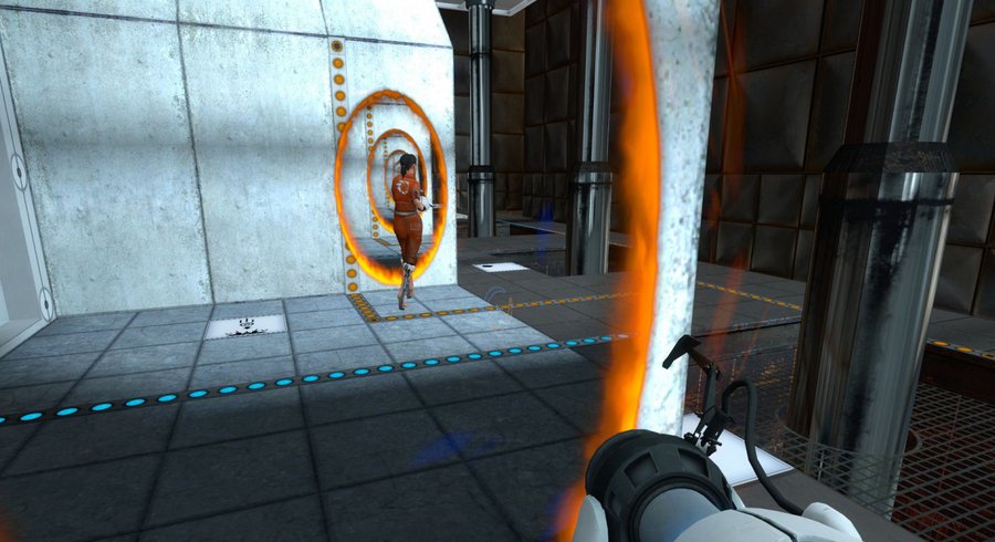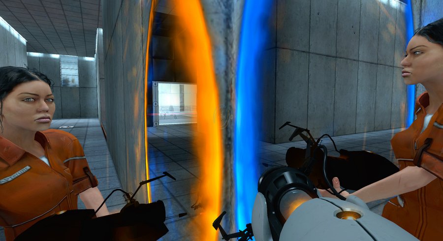 Игра «Portal» представляет собой редкий пример медиального пространства, где архитектура, тело и интерфейс сливаются в единую систему восприятия. Игра буквально моделирует симуляцию физической реальности — через алгоритмы перемещения и оптические эффекты, которые заменяют привычную физику.