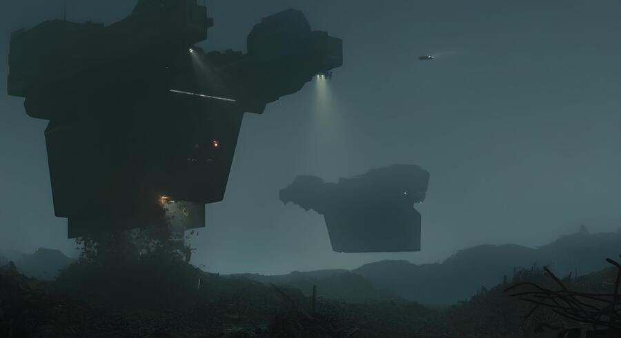 Световые яркие контуры заменяют «текстуру реальности», показывая, что среда сконструирована из данных / энергии.