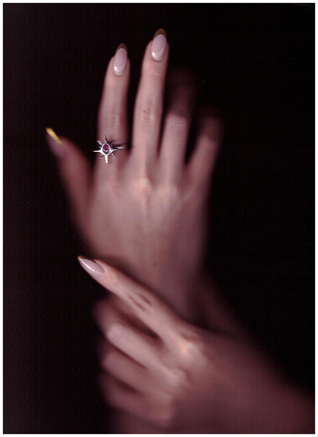 Кольцо — центральный элемент первой коллкции бренда, звезда как метафора путвеодной звезды указывающей путь и символ надежды на исполнение мечты. В коллекциях бренда будет повторяться как основная коллекция с смеью разными камнями: аметист, авантюрин, розовый кварц, лазурит, яшма, горный хрусталь, амазонит. В белом и желтом цвете металла. Материал: бронза, родий, турмалин