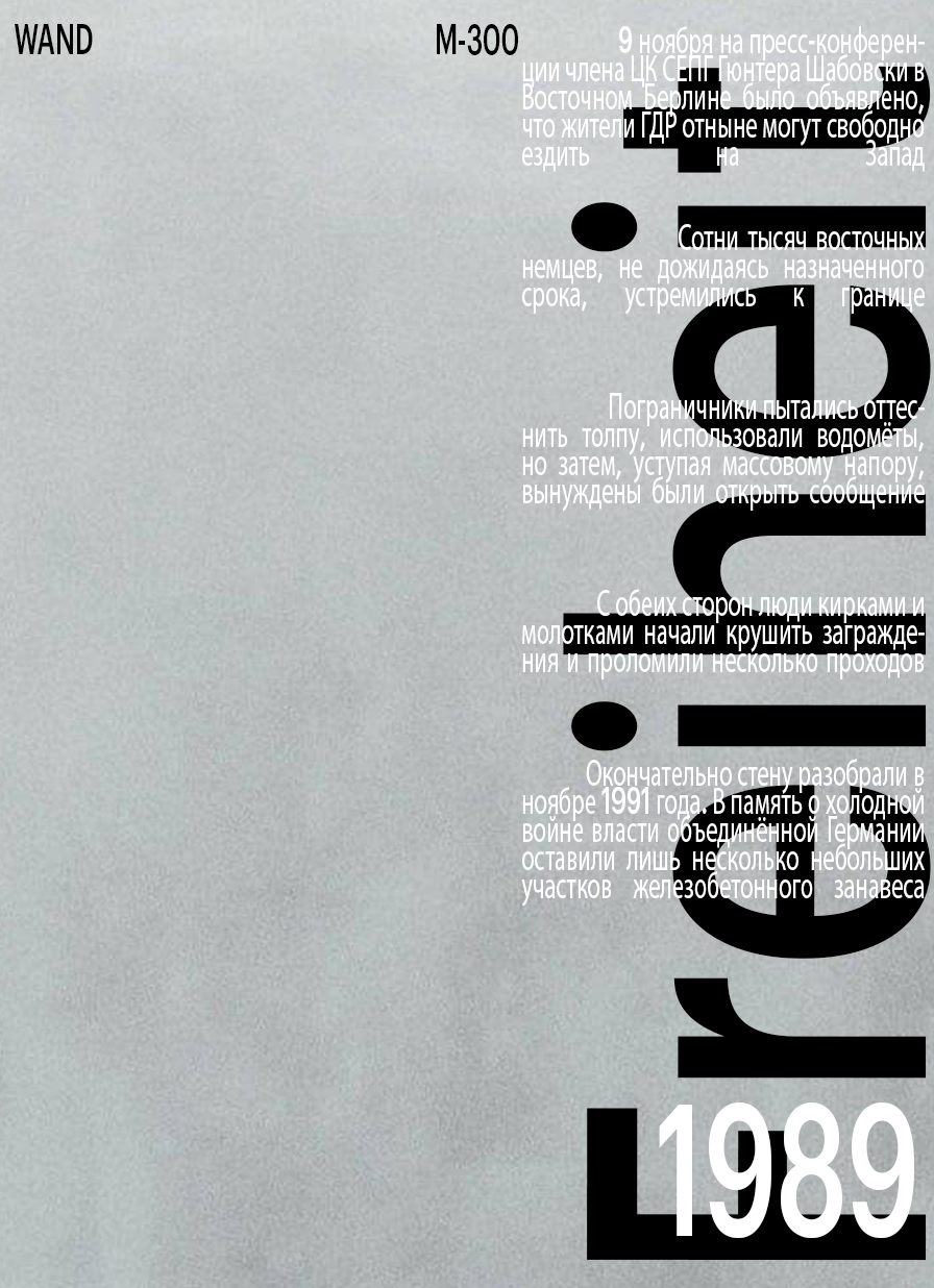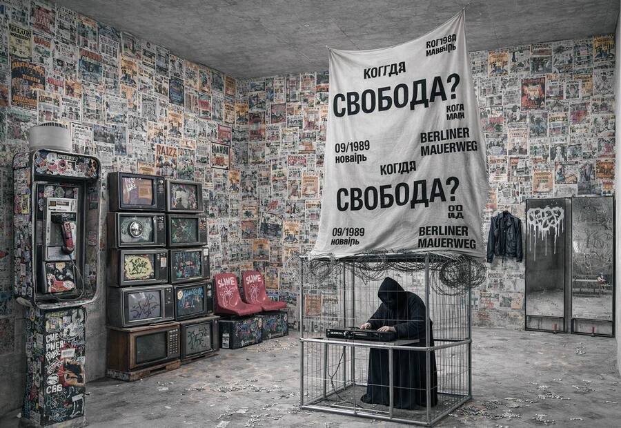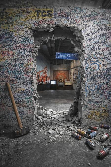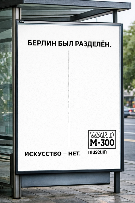 Музей задуман как пространство конфликта и перехода, а не как нейтральный контейнер для искусства. Его архитектурной и смысловой основой становится стена — прямая отсылка к Берлинской стене как физическому, идеологическому и культурному объекту. Музей работает как бруталистская структура, где бетон, шум, пустота и следы вмешательства становятся частью экспозиционного языка.
