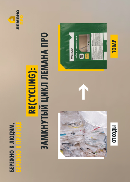 Описание: Совместно с партнёром, компанией Ван-Маркет, Лемана ПРО организовала замкнутый цикл с отходами плёнки. Объекты компании в Москве и МО собирают и передают упаковочную плёнку поставщику -> Поставщик перерабатывает её и производит из полученного сырья 6 артикулов продукции -> Готовая продукция поступает в магазины Лемана ПРО для дальнейшей продажи. Благодаря проекту удалось снизить закупочную цену товаров, обеспечив независимость от рынка и более выгодное ценовое предложение для покупателя.