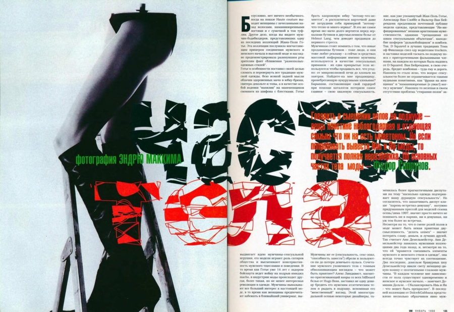 Это издание выросло из духа постсоветской свободы, но не растворилось в коммерции. Оно формировало язык и стиль нового поколения, наглядно демонстрируя, как визуальные стратегии, заимствованные из модной фотографии, современного искусства и рекламы, могут стать способом коллективной рефлексии.