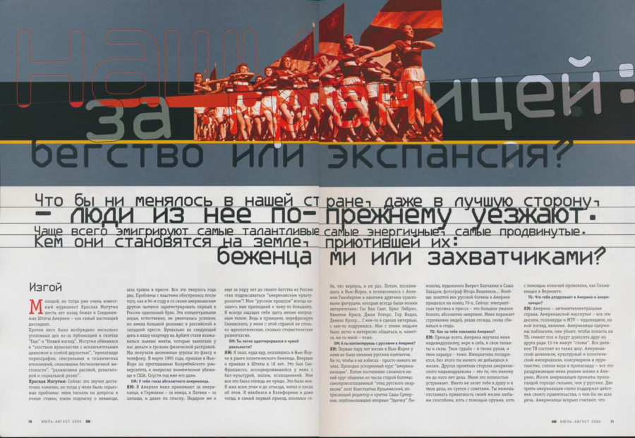 Конечно же, журнал обращается к темам искусства и моды. Репрезентуя тенденции запада, новых художников и артистов постсоветской молодежи, редакция «ОМ» воспитывает вкус поколения.